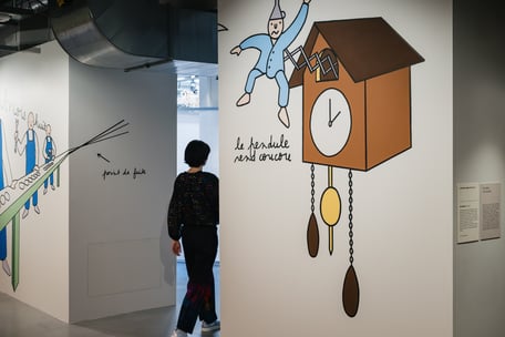 Après ce moment hors du temps, rapprochez-vous des œuvres de l’artiste Pierre Bastien : les objets du quotidien y prennent vie, le temps d’une boucle musicale. Vous en voulez encore ? Tant mieux ! L’artiste Louise Pressager prolonge la promenade à travers un ensemble d’illustrations hors les murs, disséminées dans les espaces du MAIF Social Club.