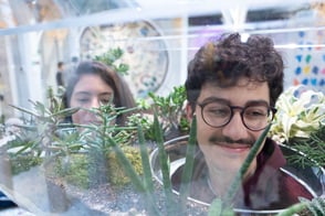 C’est l’effet que font les oeuvres de Georges Rousse à ceux qui les rencontrent. Déstructurée de prime abord, ces anamorphoses incitent le spectateur à se mettre en mouvement pour trouver le bon angle. De même, les terrariums de Vaughn Bell, dont les ouvertures à hauteur de visage poussent le visiteur à y glisser la tête pour observer l'éco-système naturel qui s'y développe.